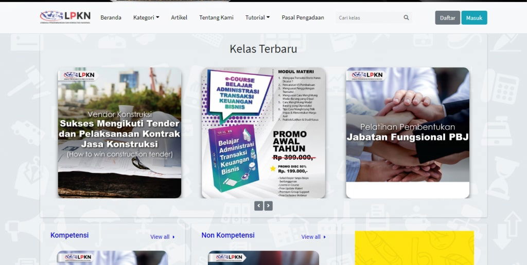 Portal informasi pelatihan online terintegrasi mulai dari pendafataran, manajemen, hingga e-sertifikat
